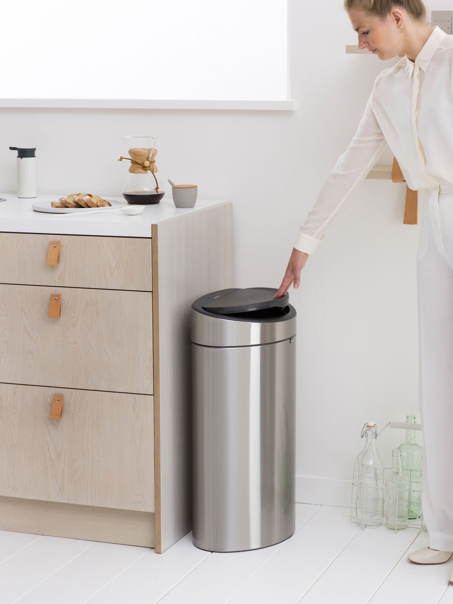Add a touch of timeless design to your home with the Brabantia Matt Steel Fingerprint Proof Touch Bin 40 litre. This space efficent bin fits closely to the wall, has a soft-touch opening system and protects your floor thanks to the protection rim. Space saving in style!