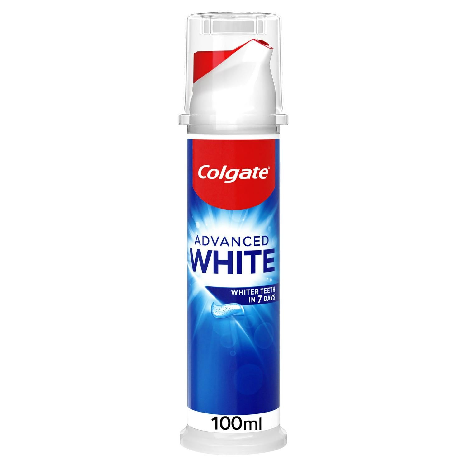Get whiter teeth in just 10 days when you brush with Colgate Advanced White Toothpaste. This whitening toothpaste contains active micro-cleansing crystals that gently polish and are clinically proven to effectively whiten your teeth*. What's more, the teeth whitening toothpaste also helps to prevent new stains from sticking to your teeth, so you can enjoy a whiter smile for longer. And with it's dual cleaning system, the whitening toothpaste removes 10x more surface stains than regular fluoride toothpaste.