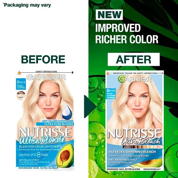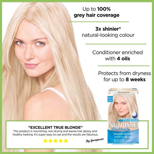 Read Moreat garnier we believe in providing our consumers with excellent home hair dye and with nutrisse ultra bleach nourished hair means better blonde all from the comfort of your own home discover our lightening technology for up to 8 levels of lift to reveal luminous long lasting blonde colour this box includes an antiyellow purple conditioner enriched with 5 nourishing oils to neutralise unwanted brassiness lock in colour and protect against dryness