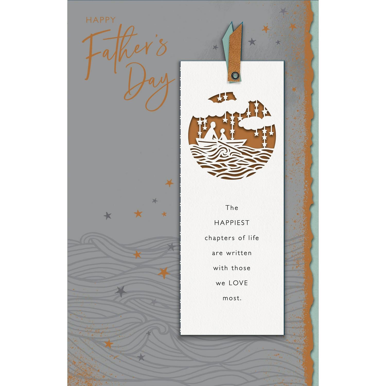 This Gibson Father's Day greeting card provides a beautiful, substantial way to express deep appreciation for your dad. It features an eloquent sentiment on the exterior, highlighting the happiest chapters written with loved ones. The card includes a practical keepsake bookmark, ensuring your kind words are cherished long after the celebration is complete. This is a memorable keepsake.
