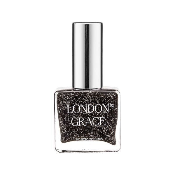 Bring instant glamour to your look with Ross, the dazzling black glitter polish from London Grace. This show-stopping shade combines deep noir with prismatic sparkle, ensuring your nails command attention.