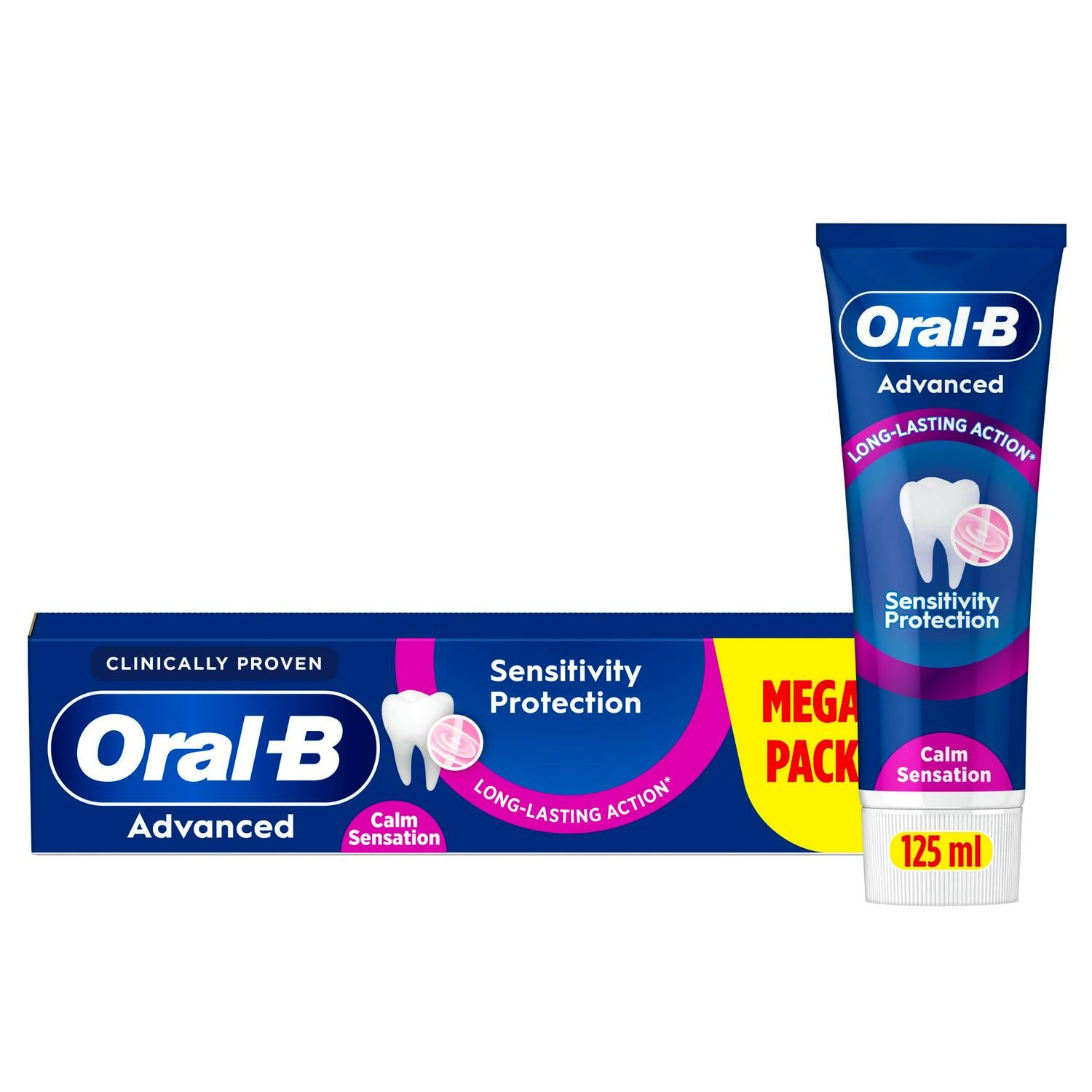 Oral-B Advanced Sensitivity Protection Calm Sensation toothpaste is clinically proven to provide long-lasting protection for sensitive teeth, with continued use. Oral-B's unique anti-bacterial technology with Stannous Fluoride Complex & Active Calm Agents creates a protective shield to effectively protect sensitive teeth even in between brushing, while providing a cooling sensation during & after brushing. Suitable for sensitive teeth. Daily Toothpaste