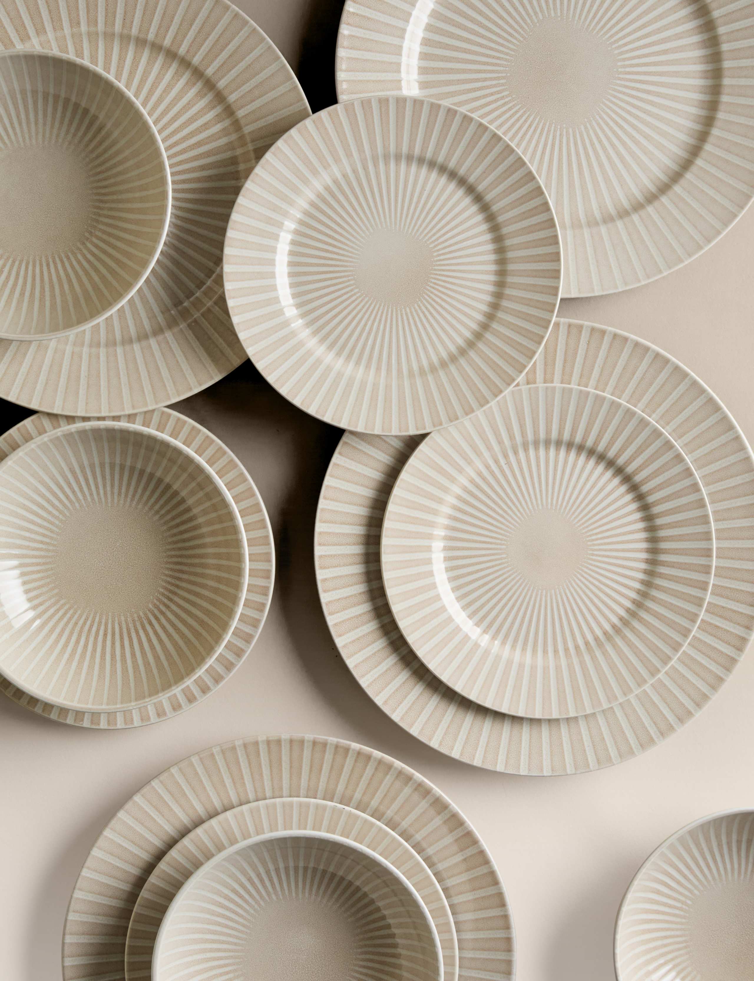 Read MoreThis dinner set keeps things modern with its distinctive reactive glaze and striped design. It includes four dinner plates, four side plates and four bowls that are all dishwasher-safe for added ease.