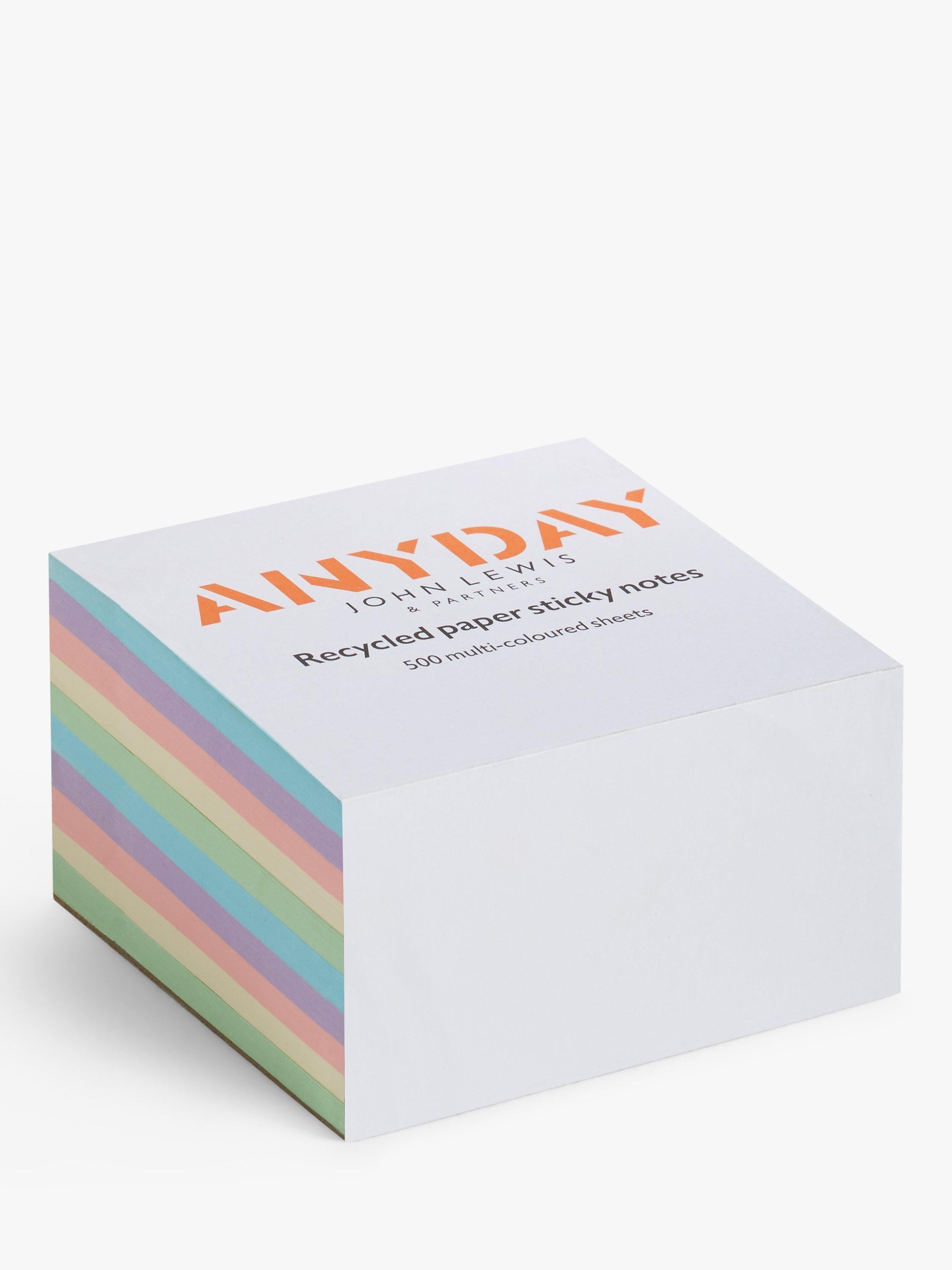 This multi-coloured sticky notes block contains five hundred individual sheets for all your essential labelling and reminder requirements. The block is constructed using recycled paper stock, supporting environmental responsibility across your entire office space. Its plastic-free packaging is fully recyclable, making this an excellent, eco-conscious choice for everyday organisation tasks.