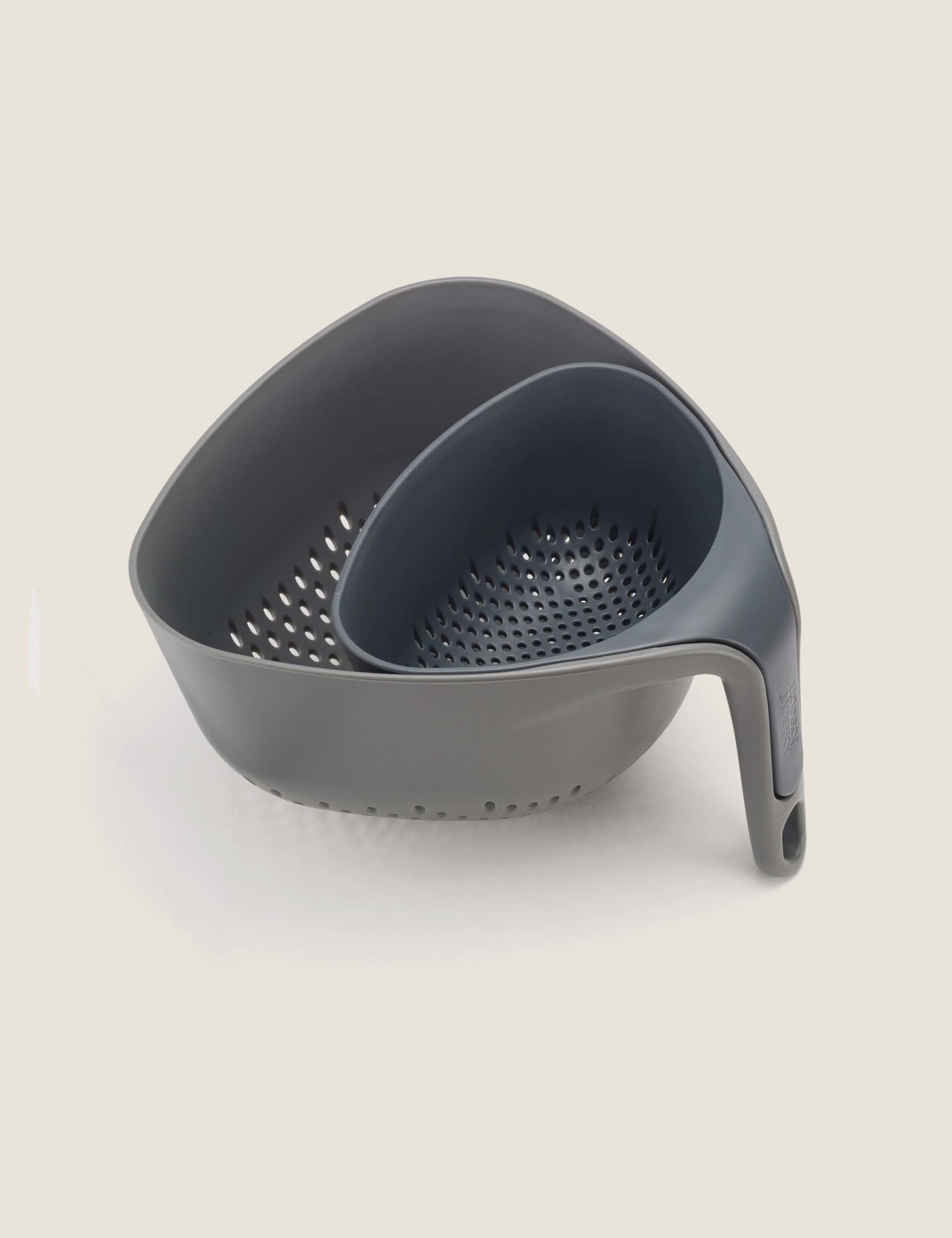 Read MoreThis set of two colanders from Joseph Joseph uses a neat nesting design to save space in your cupboards. Each piece is made with large draining holes and an ergonomic vertical handle. Easy-pour corners ensure they're simple to use, and the non-tip shape gives great stability. These pieces can be washed in your dishwasher.