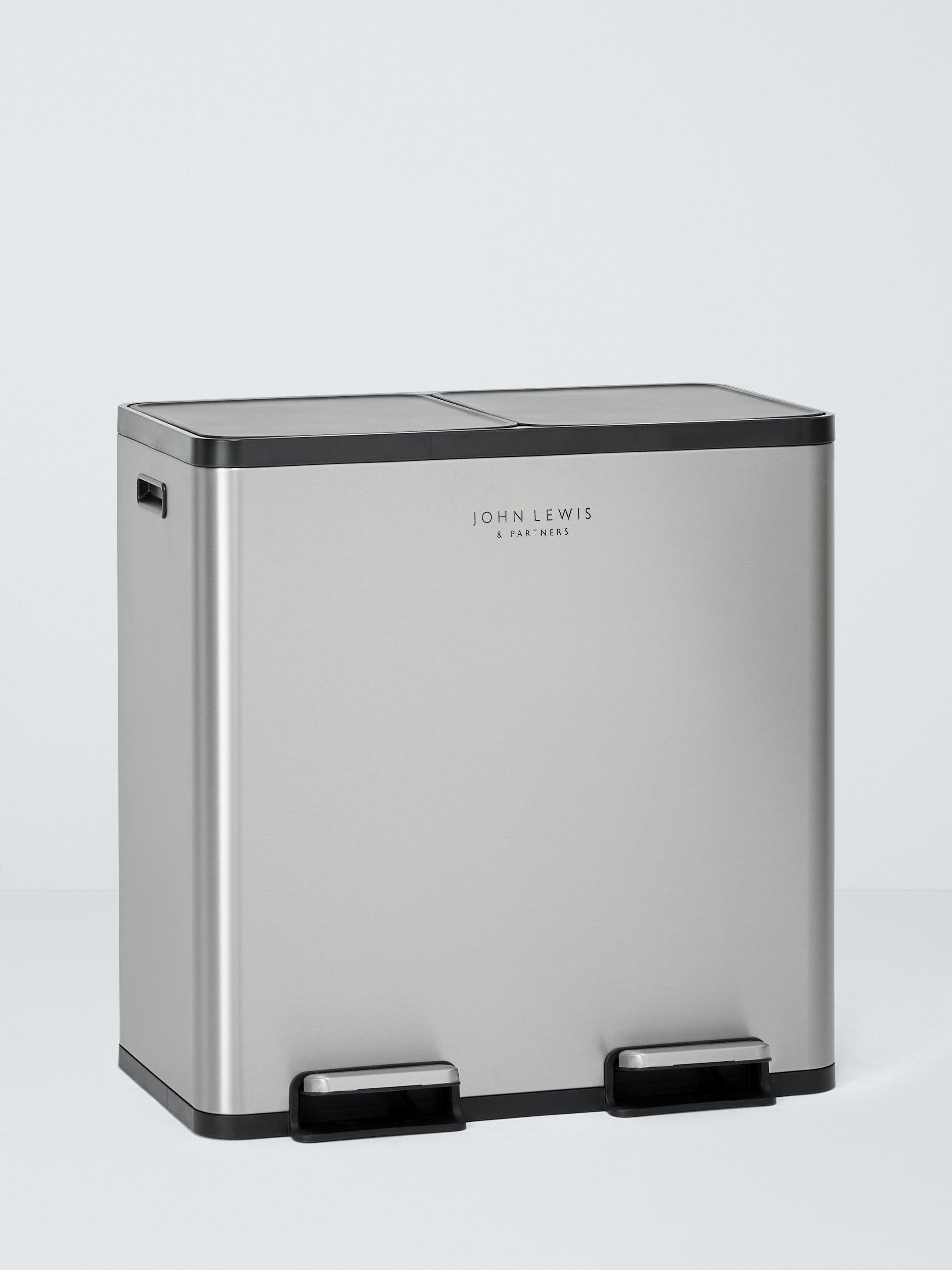 This John Lewis 80L two-section recycling bin features a robust brushed stainless steel exterior for any kitchen space. It offers independent foot pedal operation for smooth access to both removable compartments. The soft-close lids provide quiet, controlled closure throughout the day, maintaining neatness and hygiene. This unit simplifies daily sorting tasks.