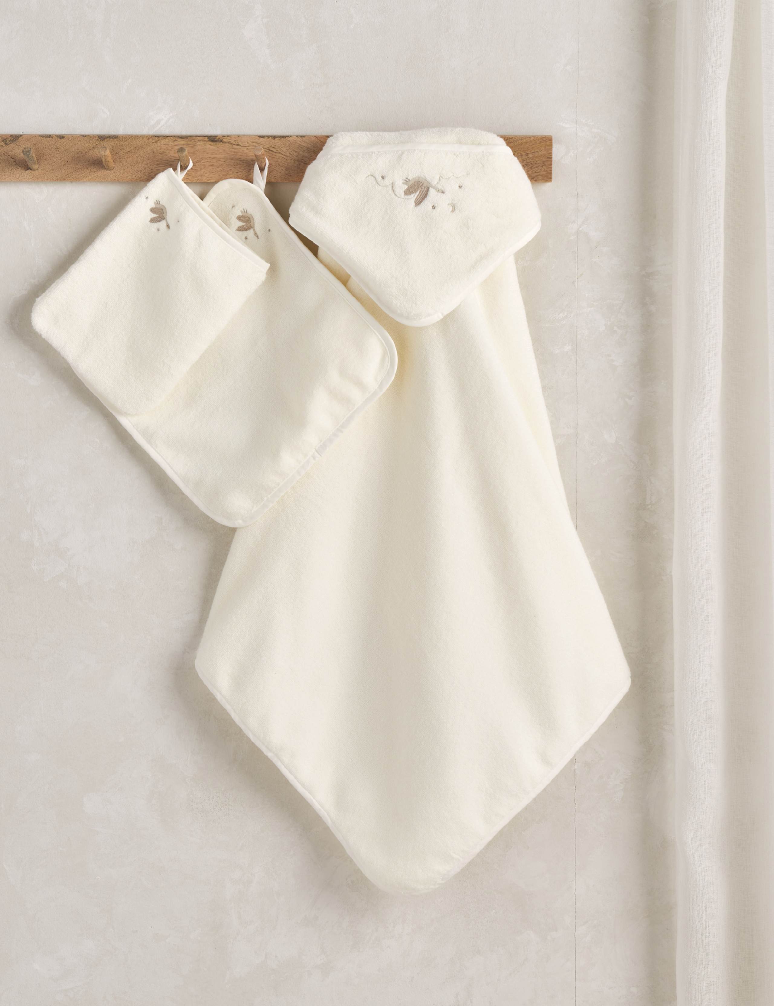 This three-piece towelling set is crafted from pure cotton, offering superior softness and absorbency for delicate skin. The coordinated collection ensures you have essential items ready for bath time or nursery use. This set combines practical utility with a gentle, quality finish suitable for infants.