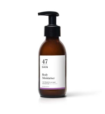 47 Skin Body Moisturiser 150ml is a specialised treatment lotion for body blemishes. This luxurious cream targets spots, KP, and redness effectively. It features Silver Chitoderm™ to eliminate bacteria and renew skin cells gently. Vitamin E and Ceramides lock in essential moisture. This lightweight formula resurfaces skin for exceptional smoothness.