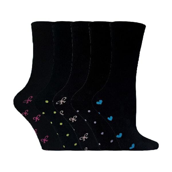 Product Information 5 pack ladies patterned sole cotton rich socks with heart bow 80 cotton 18 polyamide 2 elastane