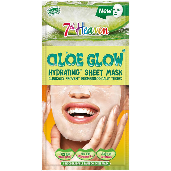 Achieve dewy, glowing skin with the 7th Heaven Aloe Glow Hydrating Sheet Mask. This soothing single-use treatment combines aloe vera and cucumber extracts in its core formulation. It is specifically designed to revive tired complexions and deeply moisturise thirsty skin areas effectively, promoting a healthy look.