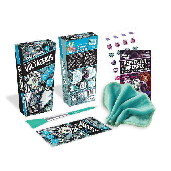 Creep it cool with our VOLTAGEOUS Frankie Stein face kit! Includes glitter peel-off mask, blemish dots, applicator, and cleansing cloth in a coffin box. Cleansed, hydrated, and creepy-cute!
