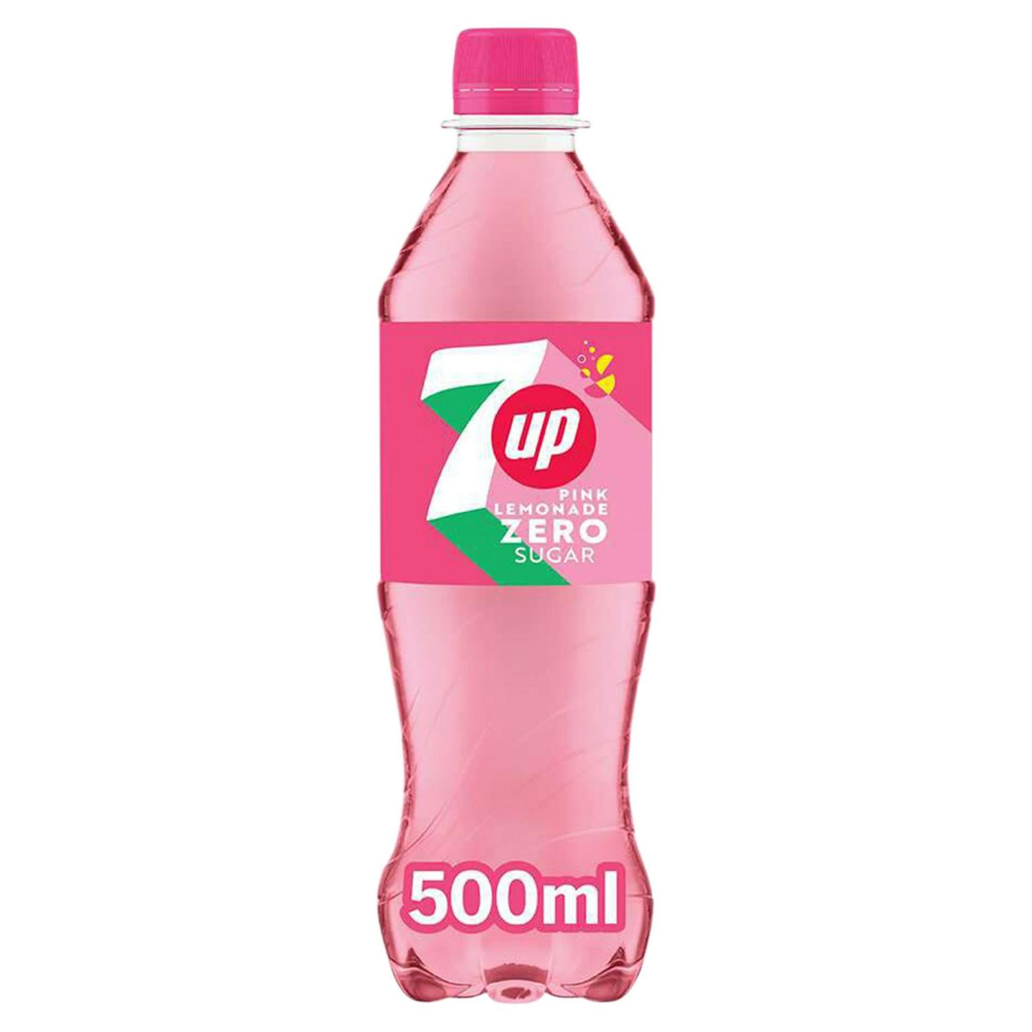 Enjoy the crisp, refreshing taste of 7UP Zero Sugar Pink Lemonade in this convenient 500ml bottle. This carbonated soft drink delivers classic lemon and lime flavour balanced with a hint of raspberry. It is formulated as a low-calorie alternative for those monitoring their sugar intake.