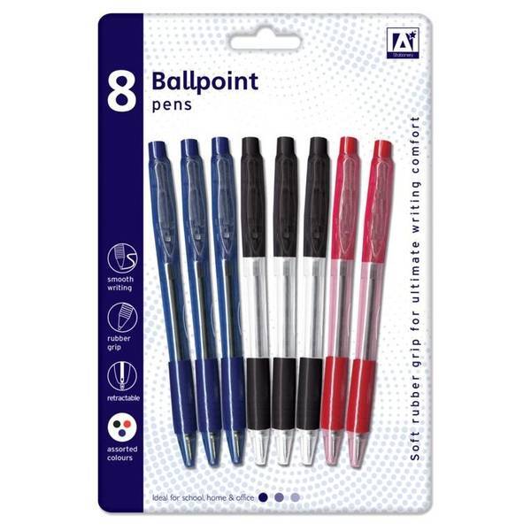 retractable tips each pack contains 3 x blue 3 x black 2 x red rubber grip for comfort