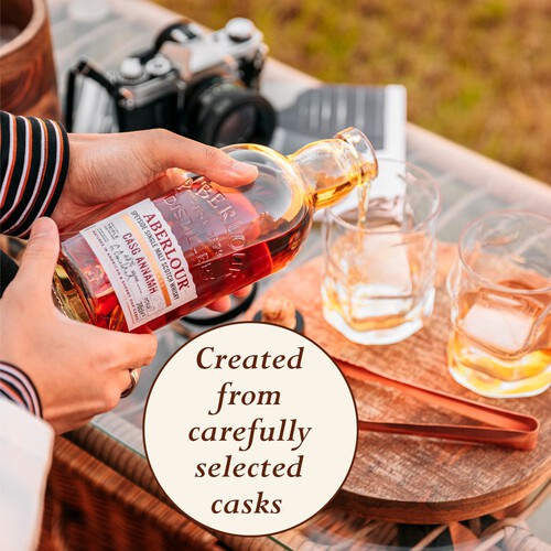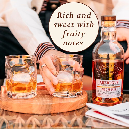 Aberlour Casg Annamh is presented in a distinctive giftbox, making it suitable for gifting occasions. This Speyside single malt offers a complex profile built on rich, fruity sweetness and underlying spice. The initial aromas suggest bright orange, glazed cherries, and warming ginger spice.