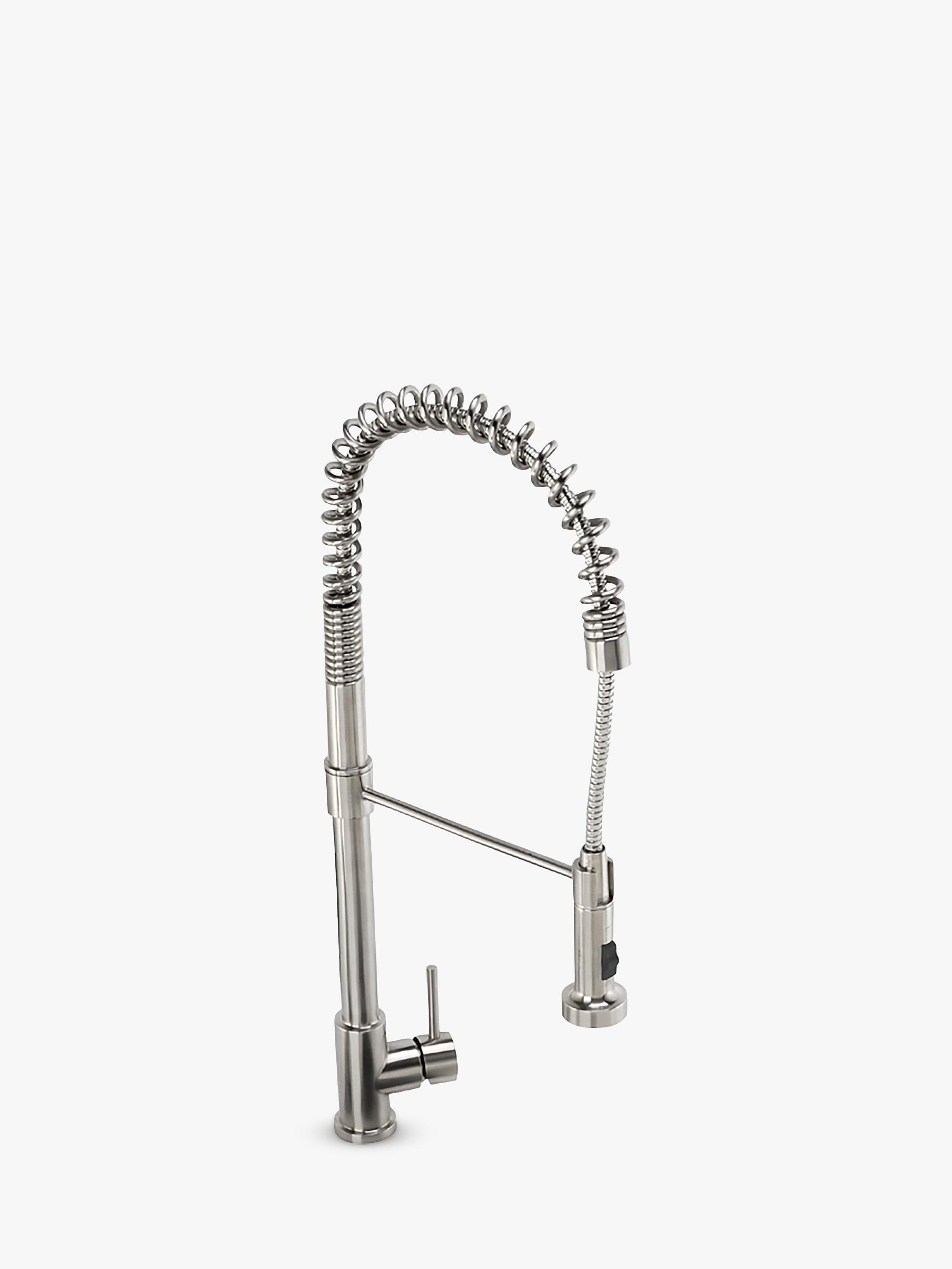 Abode's Stalto Professional Kitchen Tap features a striking stainless steel finish and impressive 670mm height for modern kitchens seeking premium style. This single-lever design offers excellent flexibility with a handy pull-around spray head, making sink tasks very efficient indeed. It is built for demanding daily use, ensuring superior durability and reliable performance.