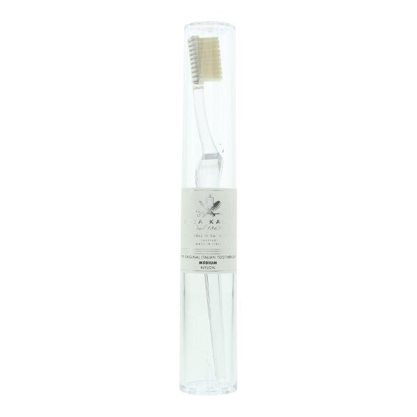 This Acca Kappa Lympio toothbrush offers a traditional design with a distinct retro flair for your daily oral hygiene routine. The vibrant turquoise handle provides an appealing aesthetic while maintaining practical functionality. It is specifically engineered to assist with consistent, effective daily dental care requirements.