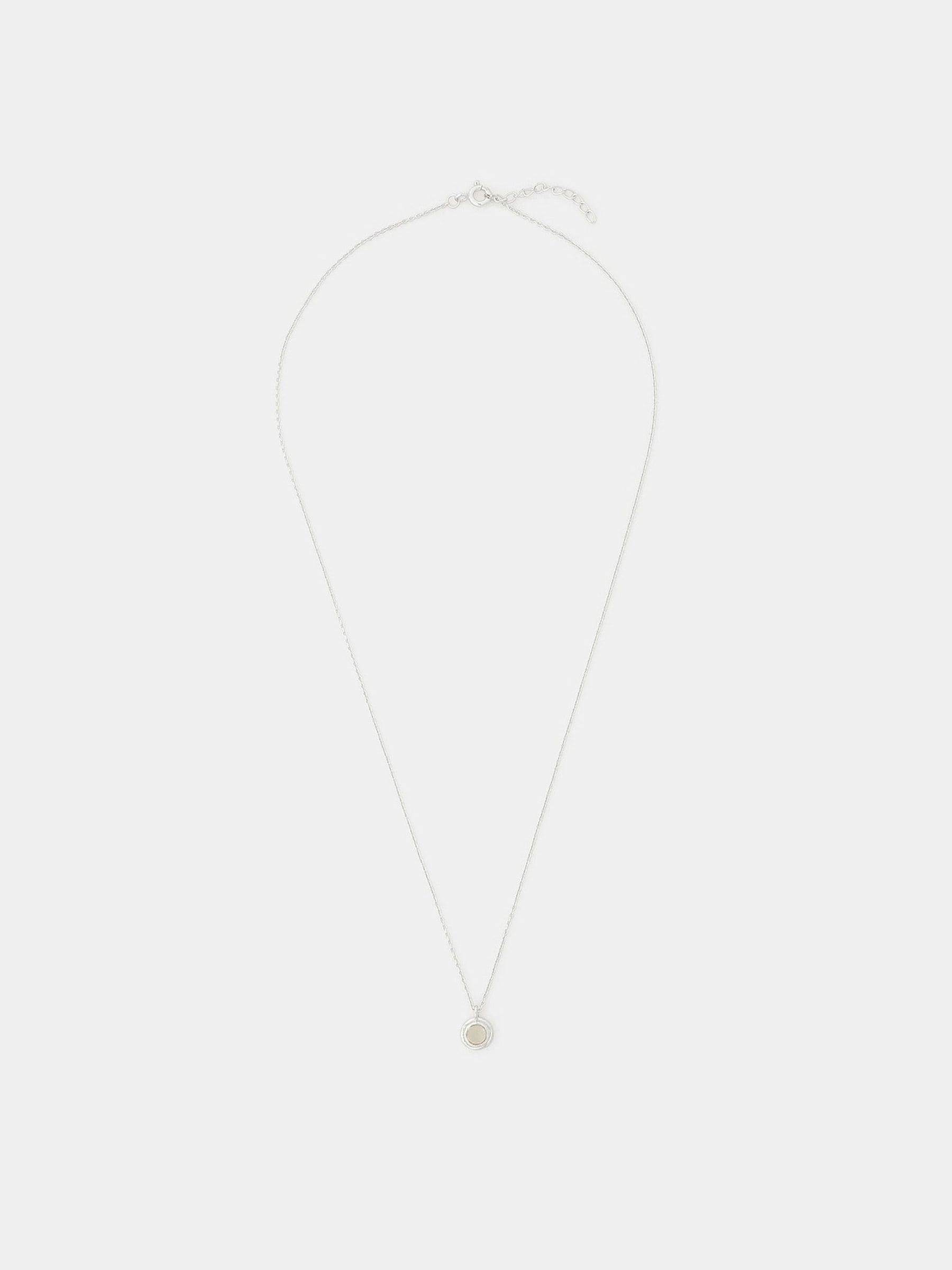 Good energies only. Designed with a classic link chain in solid 925 sterling silver, this necklace showcases a semi-precious healing stone pendant. Choose from Blue Magnesite, Aventurine, Rose Quartz, Tiger Eye or Rock Crystal. Fastens with a lobster clasp and extender.