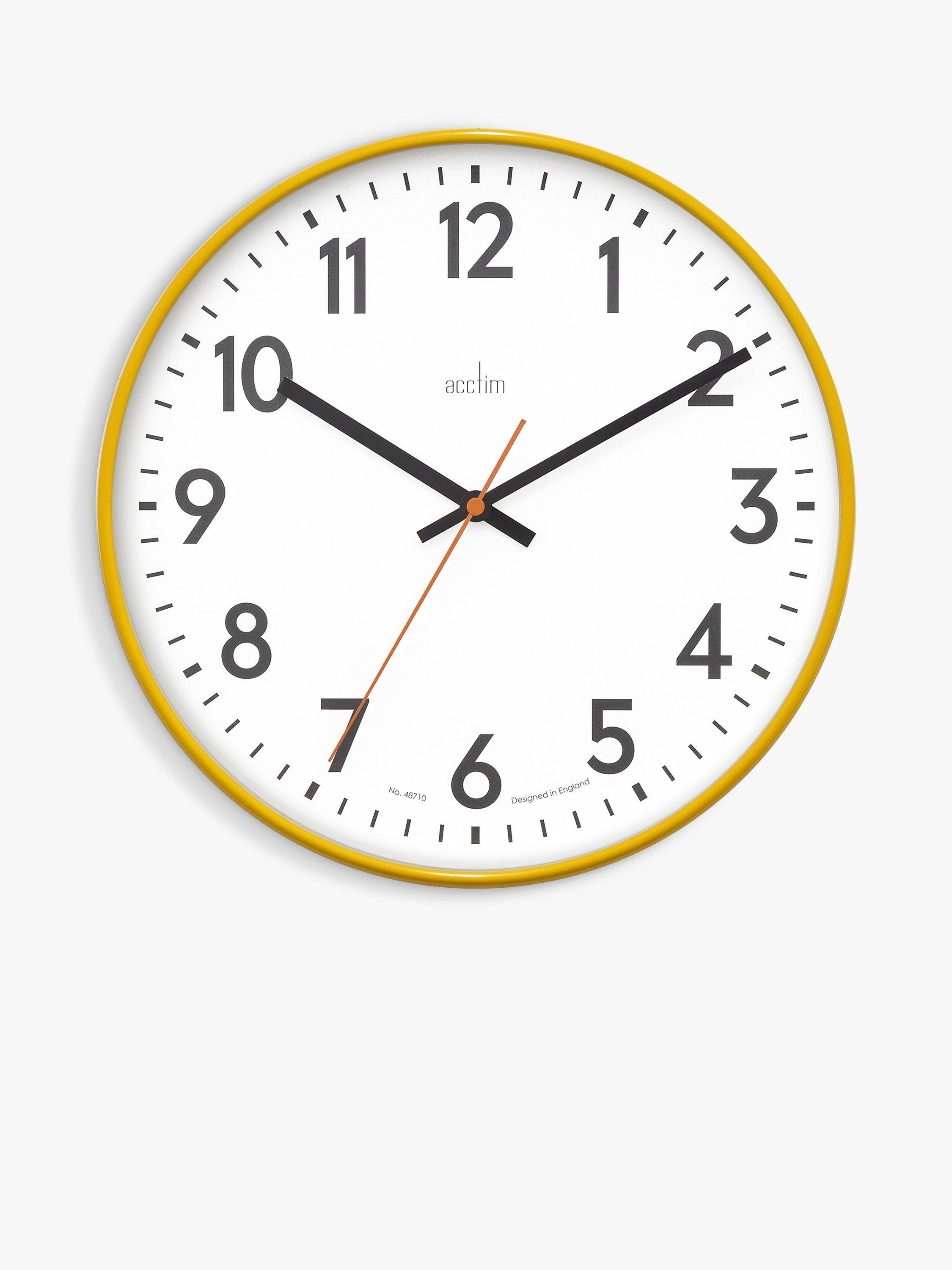 With a nod to the industrial age, the Hugo wall clock from Acctim is updated in a vibrant colour casing. It's completed with an easy-to-read Arabic numeral dial behind a glass lens.