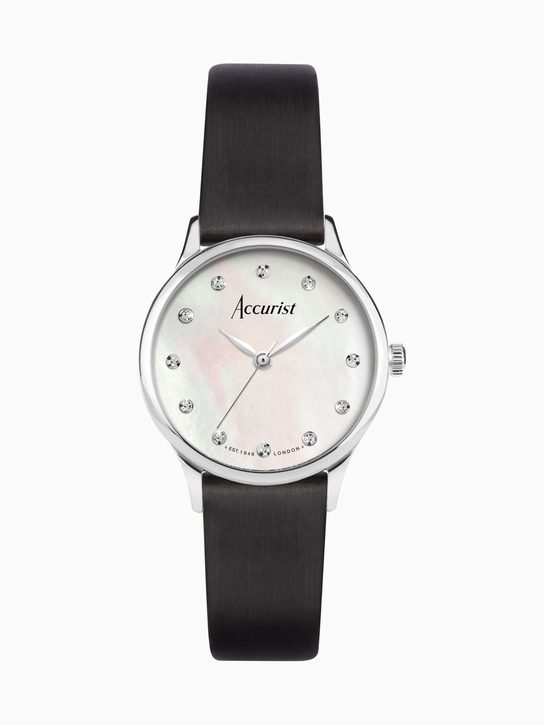 The watch is fastened with an interchangeable black leather strap and is water resistant up to 50 metres. Adorn your wrist with a flawless, British designed dress watch.