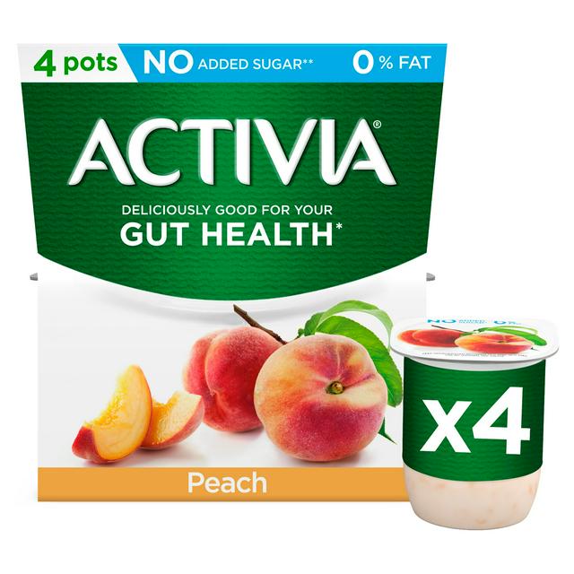 Activia Peach Yogurt provides a naturally delicious and velvety snack option designed for digestive wellbeing. This product is completely fat free and features the sweet flavour of ripe peaches. It is made using a unique blend of live cultures and sweeteners to maintain great taste.