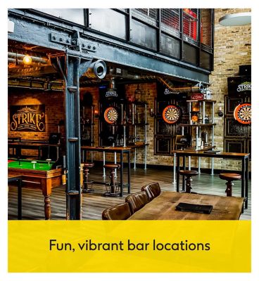 Featuring digitalised boards, a variety of themed games, and automatic scoring, this interactive darts experience is ideal for socialising and honing your skills, for both beginners and seasoned players alike! Plus, depending on the location chosen, you'll receive a complimentary beer or soft drink to enhance your gameplay. And if you find yourself in need of a bite to eat, most locations offer delicious food for purchase.