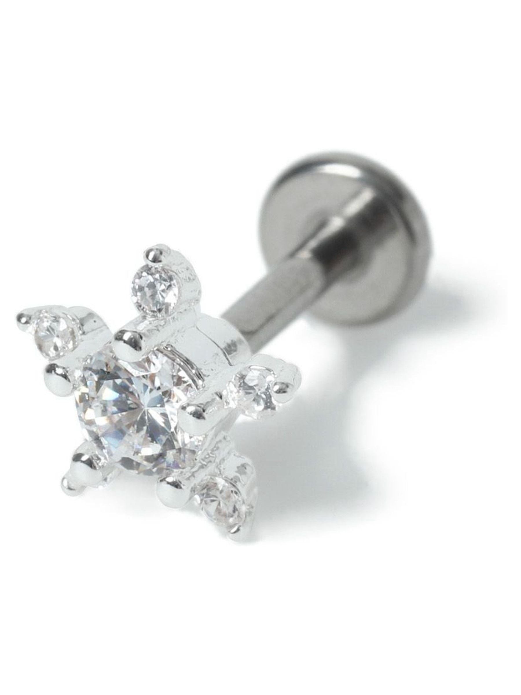 Add some sparkle to your ear stack with this silver plated star stud earring, featuring cubic zirconia stones. Wear in your lobe, helix or tragus. Suitable for healed piercings only.