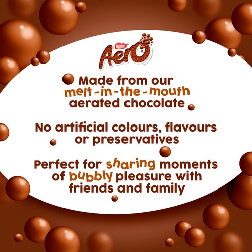 Enjoy the unique, famously bubbly chocolate experience with this convenient multipack of four Aero bars. Each bar features a smooth milk chocolate exterior surrounding a light, airy centre. This specific texture provides a satisfying melt in the mouth sensation as the bubbles release slowly.