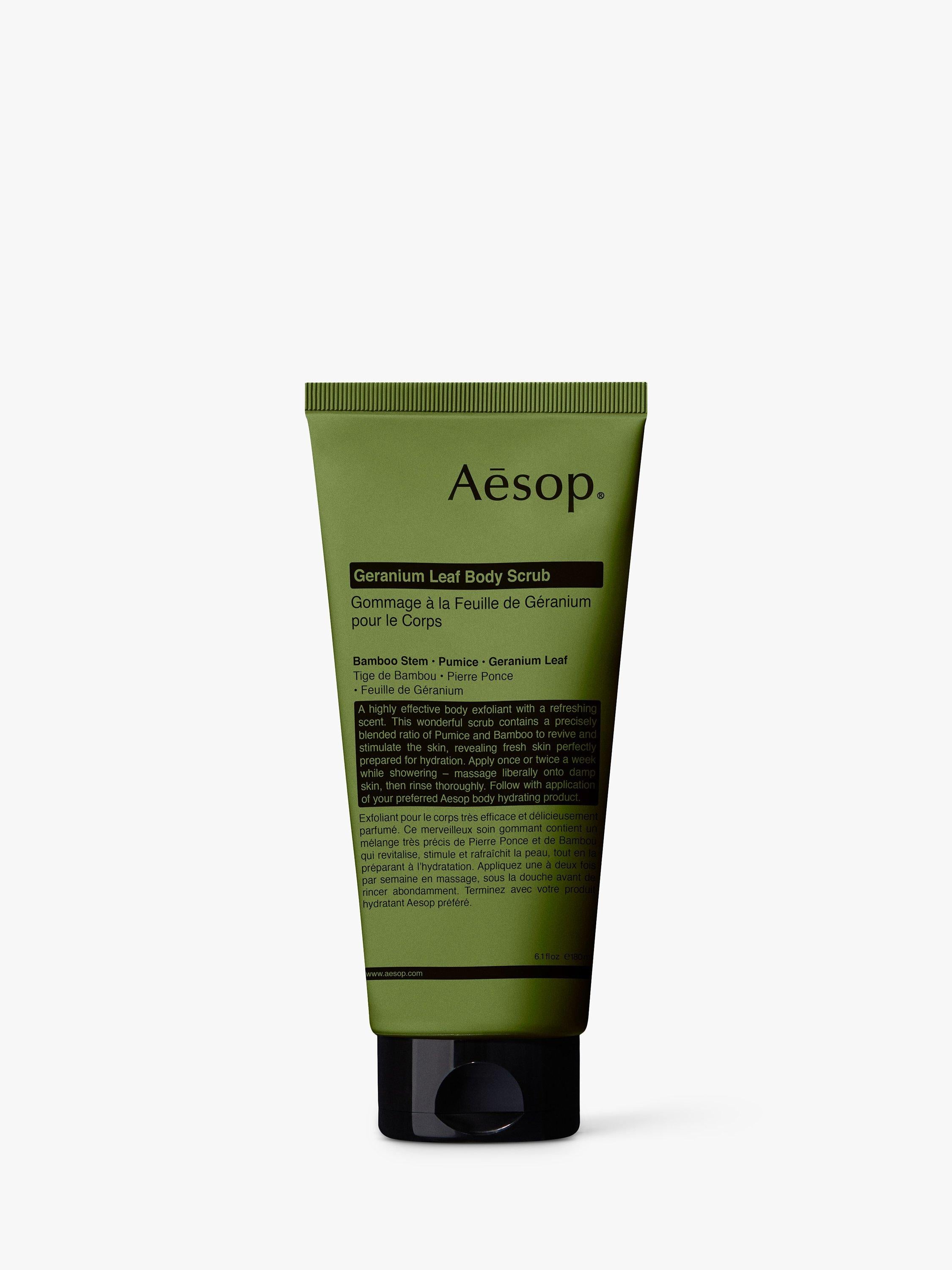 Aesop Geranium Leaf Body Scrub 180Ml provides an invigorating cleanse for all skin types needing gentle renewal. This effective gel formulation features milled Pumice and micronised Bamboo Stem for thorough physical exfoliation. Mandarin and Bergamot oils work alongside Geranium Leaf to leave skin feeling purified, soothed, and remarkably smooth after rinsing completely away.