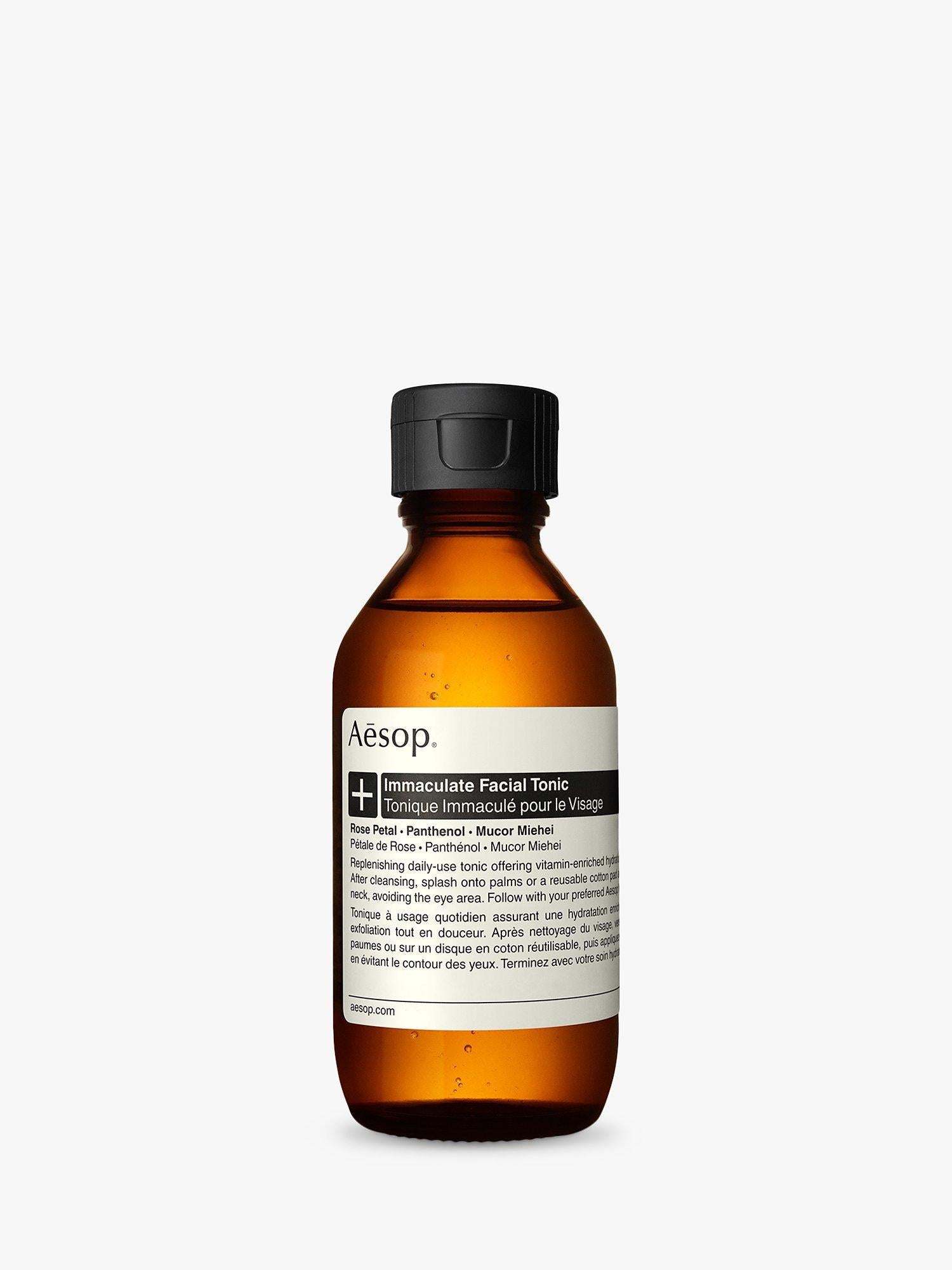 Aesop Immaculate Facial Tonic 100Ml delivers vitamin-rich, hydrating support for improved skin appearance. This toner uses gentle chemical exfoliation to smooth and refine surface texture noticeably. It ensures skin feels soft, replenished, and exceptionally smooth with a light finish. Designed for normal, dry, sensitive, or mature complexions requiring daily refinement.