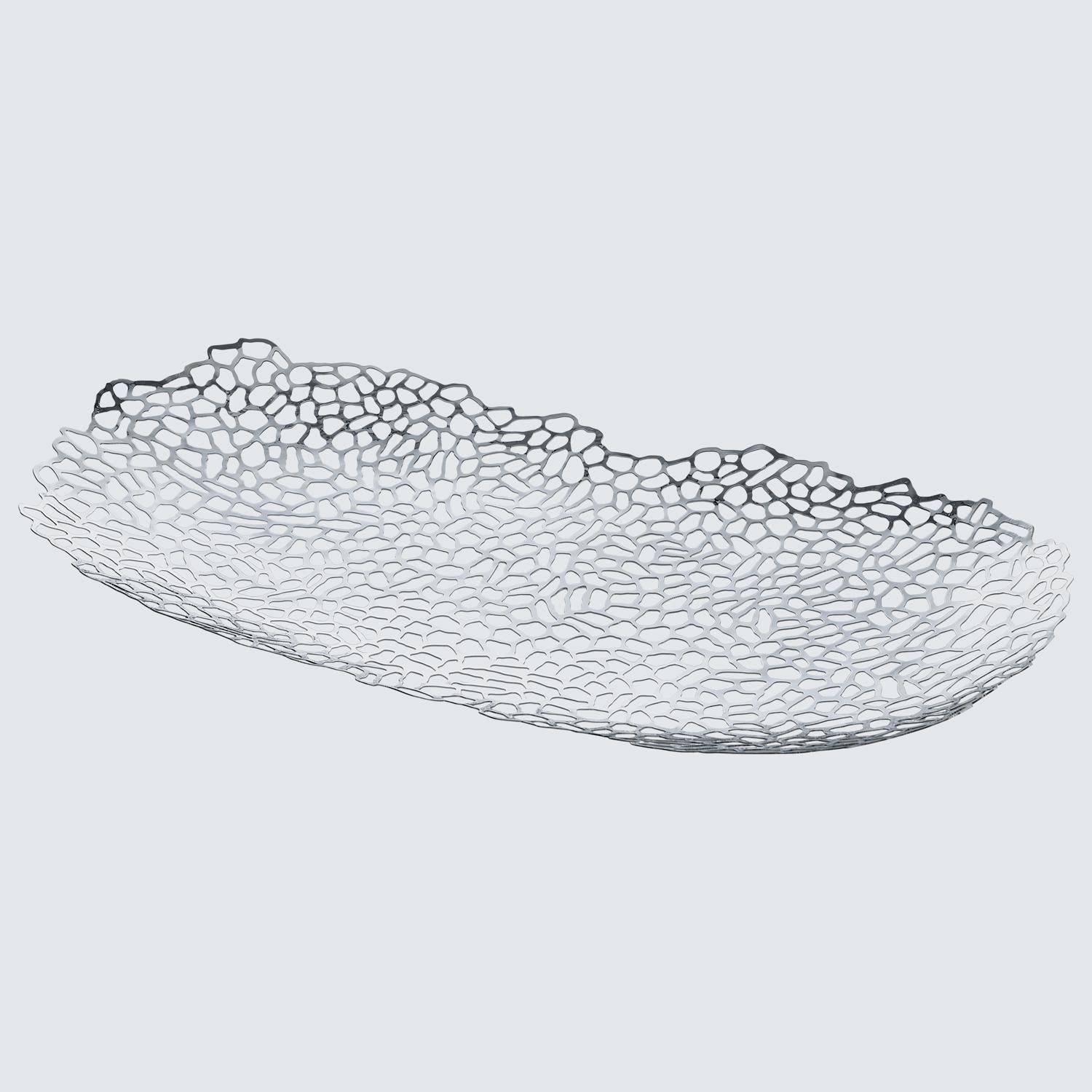 Read MoreThis Alessi Opus centrepiece is intricately constructed through a laser cutting process that leaves the mirror polished stainless steel with an unusual perforated design. In a distorted oval-shape, it can be used to embellish consoles or add a finishing touch to dining tables as a fruit bowl. The piece was imagined and created by Guido Venturini who was inspired by his love of music.