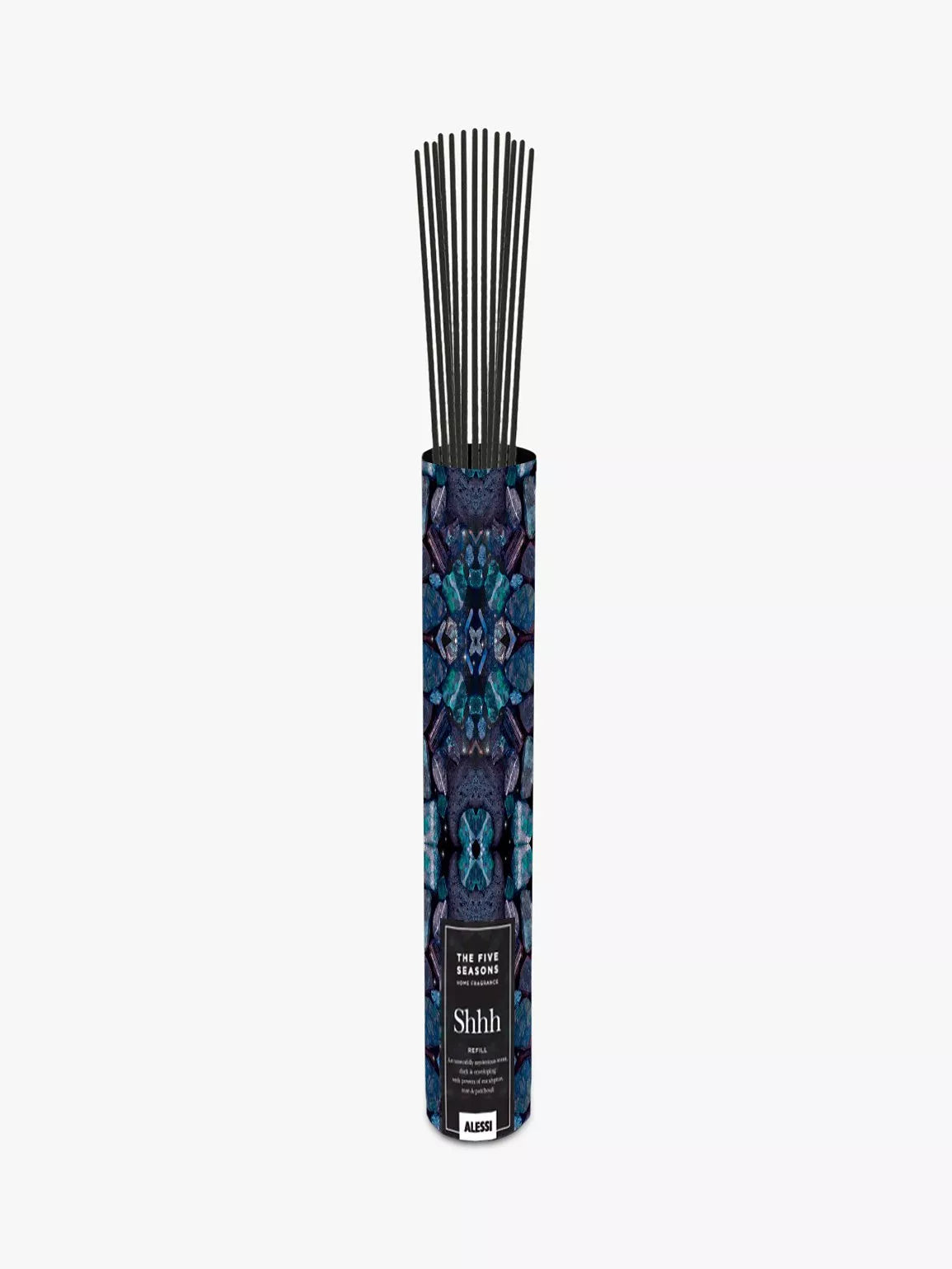 Transform your space with the calming aroma of Alessi Shhh incense sticks, a luxurious blend of eucalyptus, rose, and patchouli. These exquisitely scented sticks offer a moment of tranquility and are perfect for creating a relaxing atmosphere.