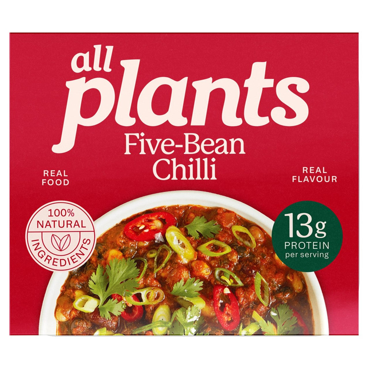 Enjoy a deeply satisfying, flavourful meal with this Spicy Five Bean Chilli from all plants. This ready-to-heat dish combines five different hearty beans in a rich tomato sauce base. It is seasoned carefully with chilli, paprika, and cumin for an authentic taste profile.