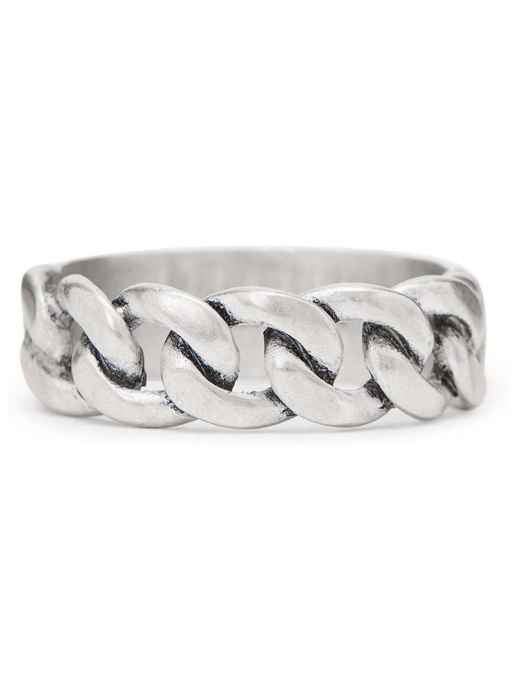 Unisex striking band ring featuring a unique half-frozen chain detail.