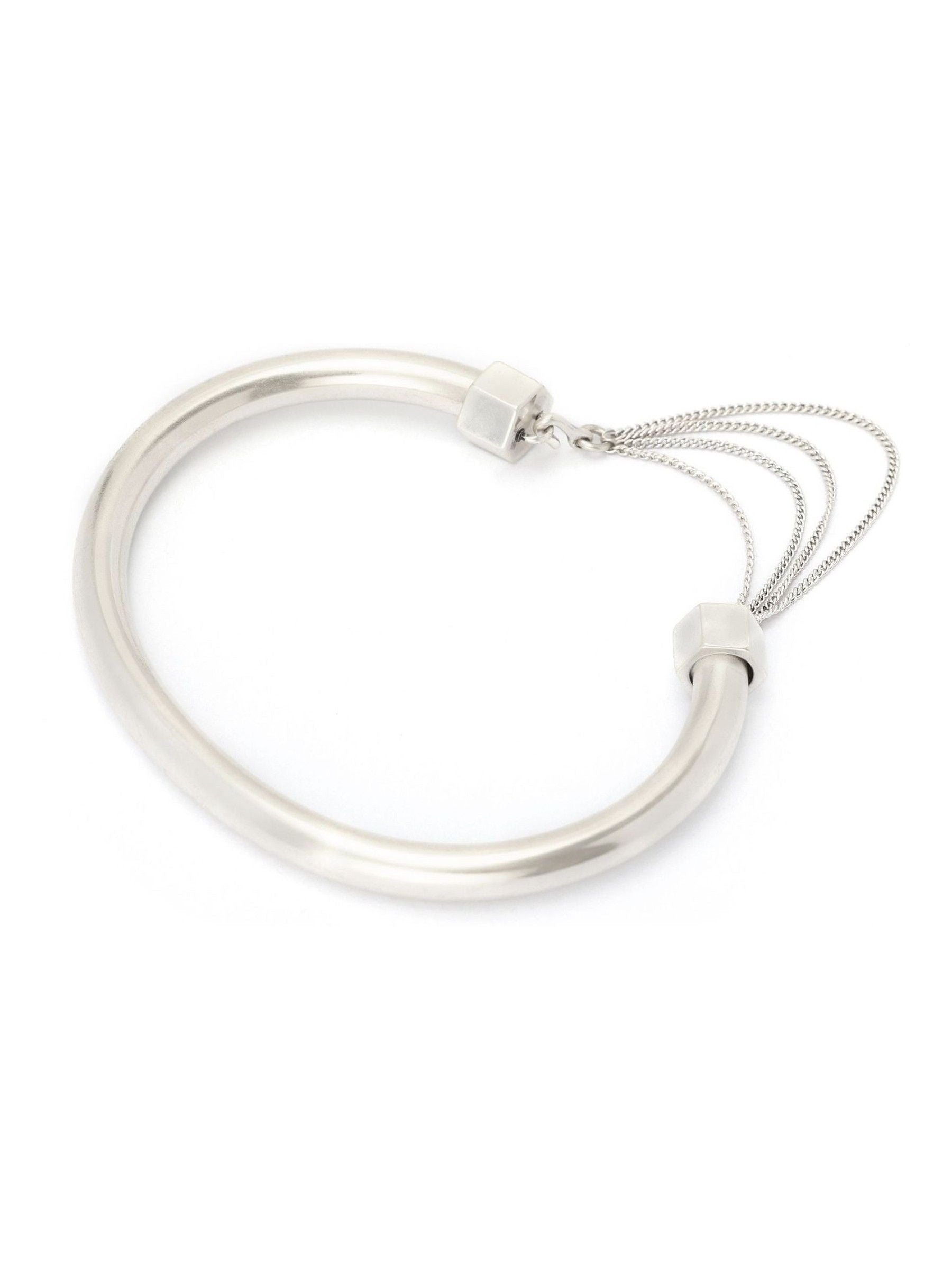 Minimal cuff bracelet featuring sophisticated bolt hardware and refined swag chains perfect for an everyday statement. Bracelet has a lobster clasp closure. Made from brass. Dimensions - Length: 146mm, Width: 5-8mm, Diameter: 61mm.