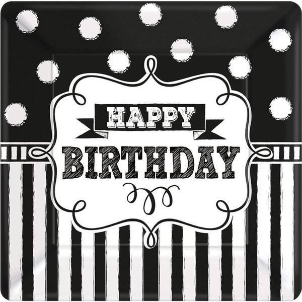 Material: Paper. Design: Chalk Board, Marquee Dots, Square, Stripe Detail, Text. Occasion: Birthday.