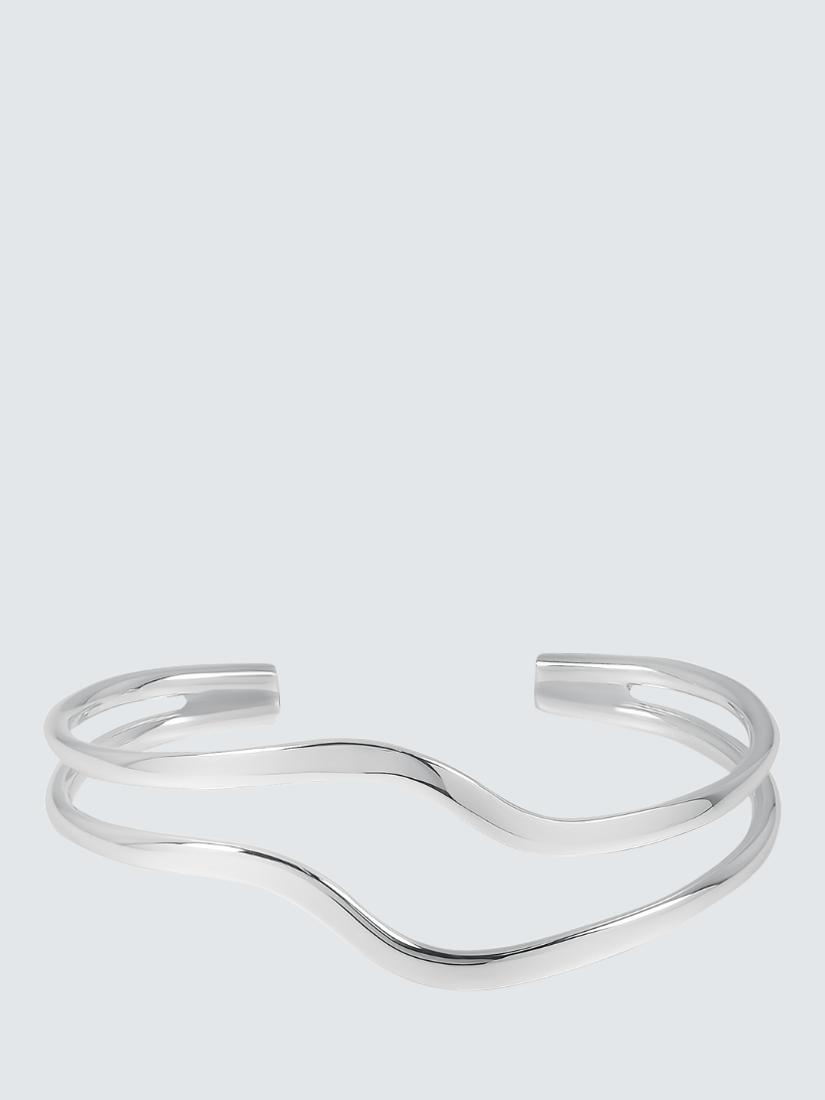Andea Sterling Silver Double Wave Half Bangle is a sophisticated piece of women's jewellery inspired by marine aesthetics. This open-end bangle features a sinuous, wavy front detailing for elegant movement. Its polished sterling silver ensures a lasting shine and quality presentation for daily wear or special events.