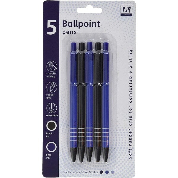 This pack contains five Anker retractable pens, ideal for daily writing tasks. They feature a design engineered for a smooth and consistent writing experience across various documents. The construction incorporates practical elements for comfortable use during extended periods.