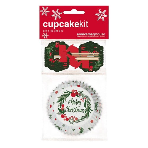 This Anniversary House kit offers a quick and simple decorating solution to add traditional seasonal foliage to your baking. It is a complete set designed to bring festive cheer to your cupcakes with coordinated items. These components ensure a uniform and attractive presentation across all your holiday bakes.