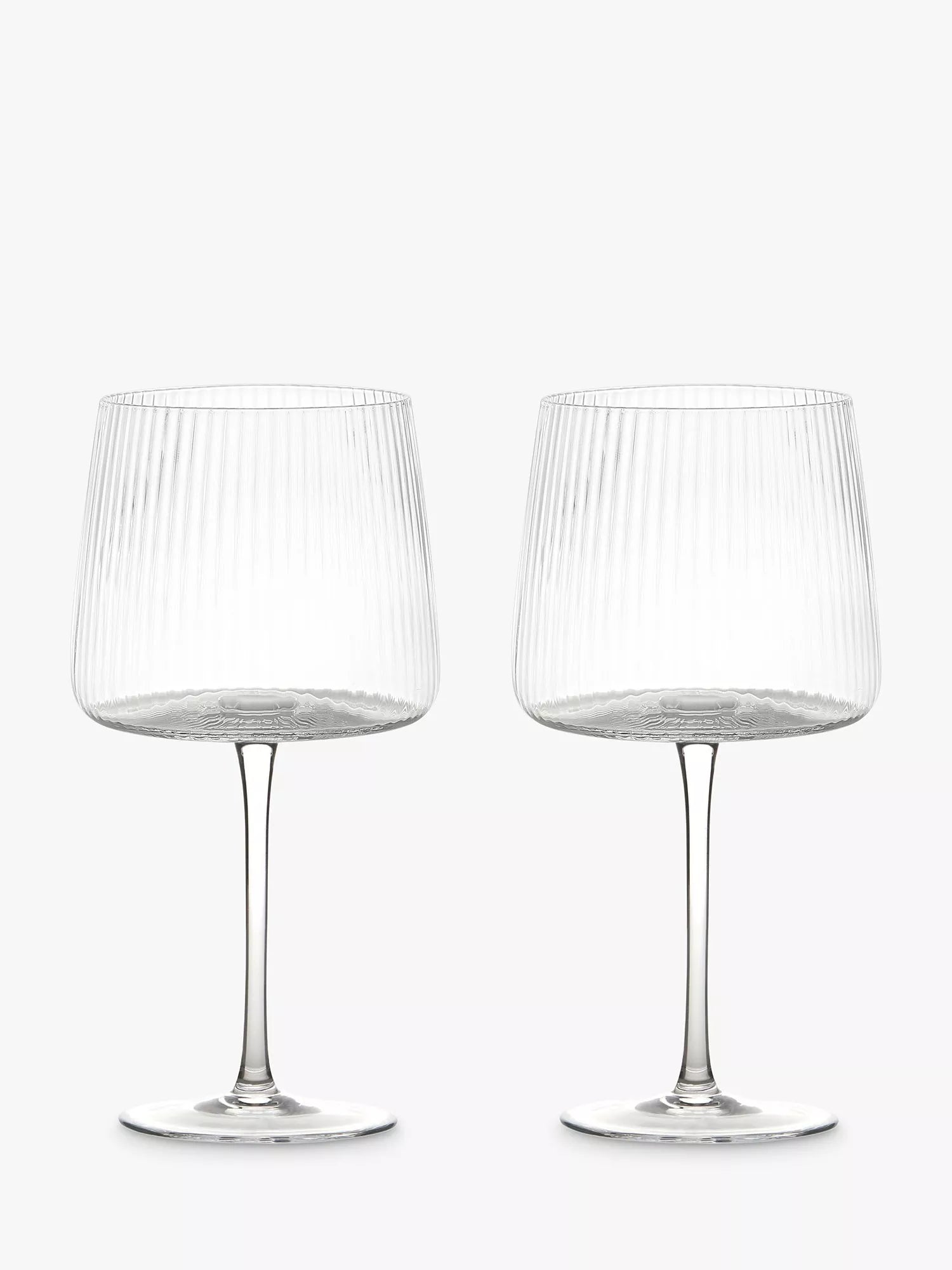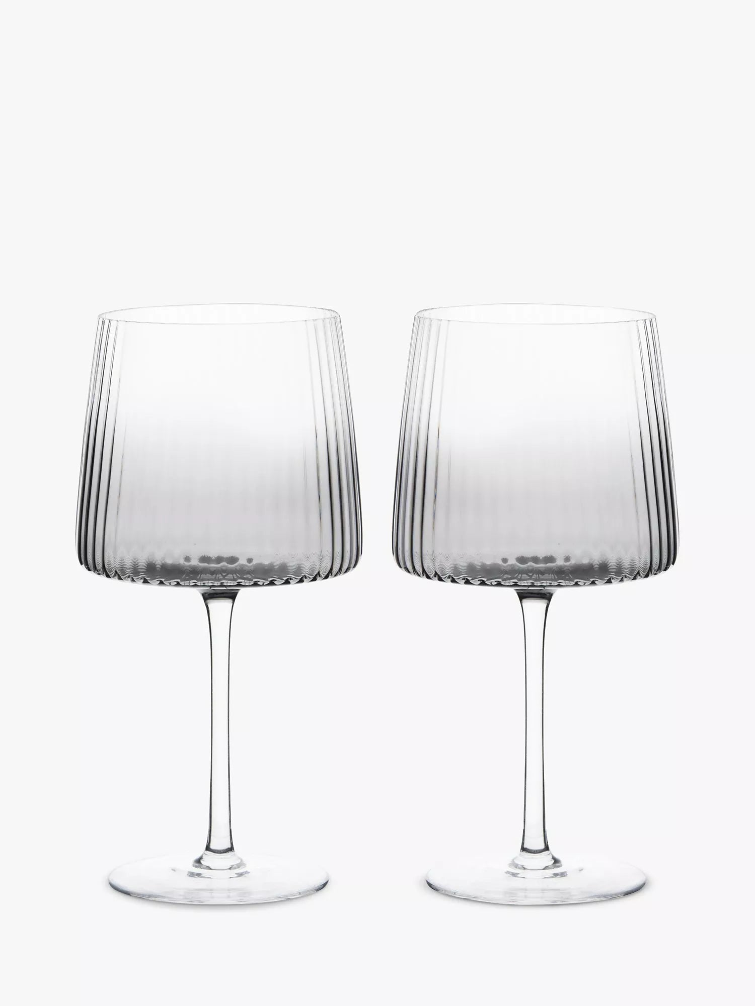 Handmade and mouthblown with fluted optics, this set of two gin glasses from Anton Studio Designs instantly create an elegant and modern silhouette.