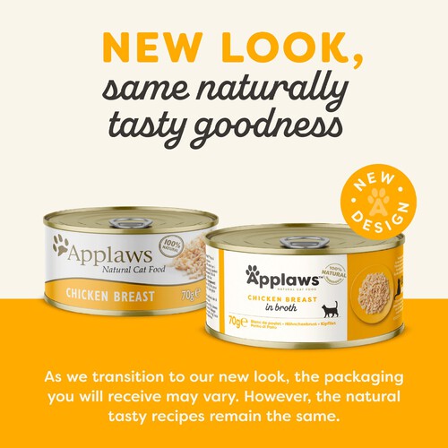 Applaws Chicken Breast tin offers a simple, high-quality addition to your cat's meals. This complementary food is made with 100% natural ingredients, perfect for discerning felines. For a fully balanced diet, ensure you supplement this wet food with Applaws complete dry cat food as recommended by the manufacturer.