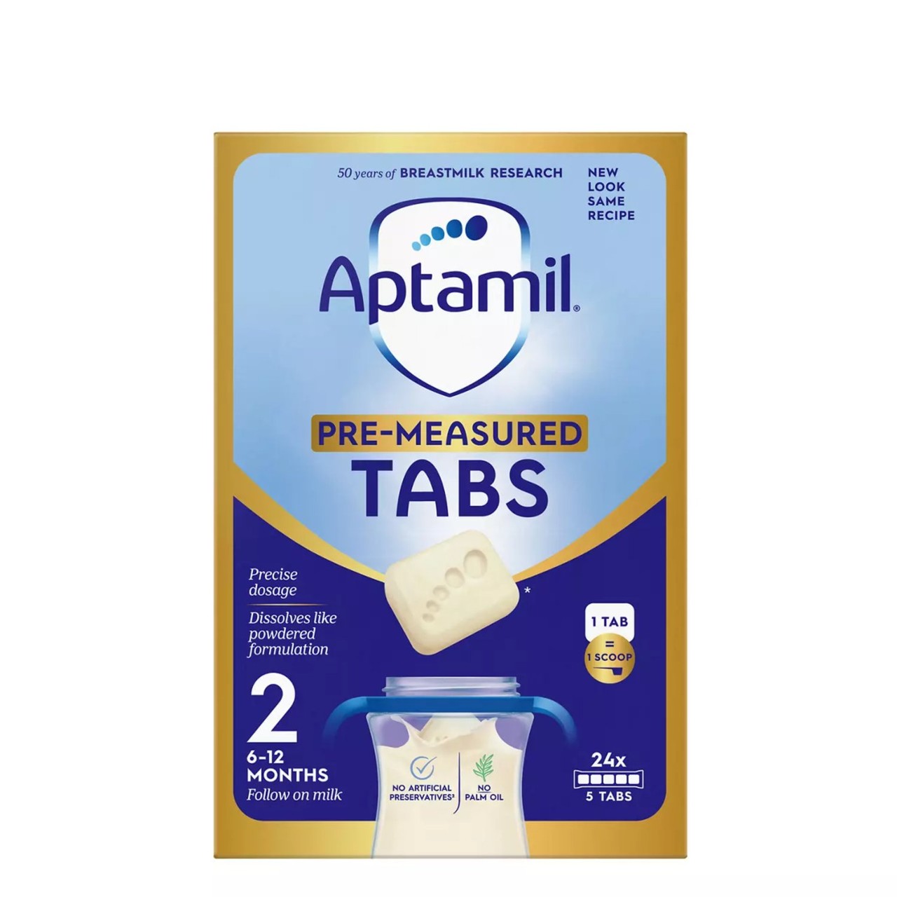 âAll reviews are the opinion of our consumers. Please refer below to our guidance on how to prepare a beakerâIMPORTANT NOTICE: Breastfeeding is best. Aptamil Tabs Follow-on milk should only be used as part of a mixed diet and not as a breastmilk substitute before 6 months. Use on the advice of a healthcare professional. Nutri FibresGOS/FOS - Our blend of Galacto- and Fructo-oligosaccharidesImmunonutrientVitamin D to support the normal function of the immune systemDHA (Omega-3 LCP)Supports normal visual development. Benefit obtained from a daily intake of 100mg DHAVitamins A & C and IronIron supports normal cognitive developmentNo artificial preservatives**as required by the legislation.
