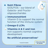 Aptamil® Toddler Milk is tailored to help meet the increased nutritional needs of toddlers aged 1+ year.Nutri FibresGOS/FOS - Our blend of Galacto- and Fructo-oligosaccharidesImmunonutrientVitamin D to support the normal function of the immune systemOmega-3 LCPsVitamins A&C and IronIron supports normal cognitive developmentNo artificial preservatives**as required by the legislation.Supports a Toddler's Healthy Start*2 beakers a day (2 x 150ml)*Provides 100% of the recommended daily amount of vitamin D for toddlers***Calcium for normal growth and development of bonelodine to help support the normal growth of children*Reference Nutrient Intake/Recommended Dietary Allowance as recommended for toddlers by the Department of Health (UK)/Food Safety Authority of Ireland