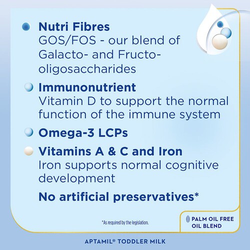 Aptamil Toddler Milk is specifically formulated to address the increased nutritional requirements of children over one year old. This powder supports healthy development by delivering essential nutrients tailored for this age group. It provides a balanced dietary supplement suitable for daily consumption as part of a varied diet.