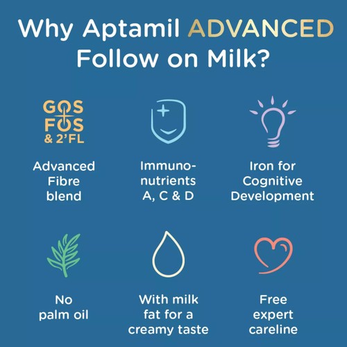 Aptamil Advanced 2 is our most advanced formulation, carefully developed to help meet the increasing nutritional needs of your baby between 6 and 12 months old. This follow on milk powder supports continued growth when moving beyond first infant formula. Preparation instructions detailed on the packaging must be followed precisely.