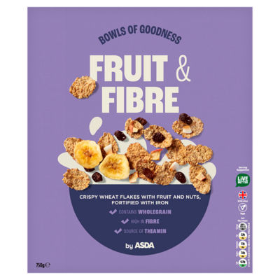 Product InformationOur Cereals Are a satisfying choice for any time of the day, whether they be for a tasty kickstart to your day or a convenient, delicious evening snack, we have everything to bring brighter living to your daily routine. Adults should aim for 30g fibre per day. Each portion of fruit & fibre contains 3.7g of fibre Wholegrains include all parts of the grain Vitamin B1 is also known as thiamin which helps to maintain normal function of the heart