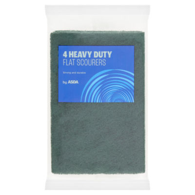Product InformationAbout this Product Asda Heavy Duty Flat Scourers are long-lasting and made with a tough, abrasive fibre, making them perfect for heavy duty kitchen cleaning tasks.