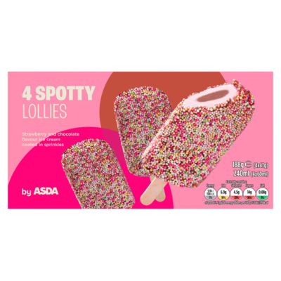 These ASDA Spotty Lollies offer a fun, sweet treat, conveniently packaged in a multipack format for sharing or individual enjoyment. The treat features decorative sugar balls generously covered with a rich chocolate flavour coating. This confectionery item is suitable for vegetarians, making it a widely accessible choice.