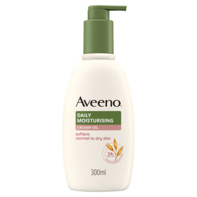 Product InformationAveeno® Daily Moisturising Creamy Oil, Almond Scent improves your skin's natural balance for healthy looking skin. Moisturises for 24h to help prevent, protect and nourish dry skin. Care for Skin Formula with nourishing oat & sweet almond oil helps to soothe skin & gives you more resilient skin from day 1. - suitable for dry, sensitive skin on the body & face - non-greasy - vegan formula* *does not contain animal derived ingredients