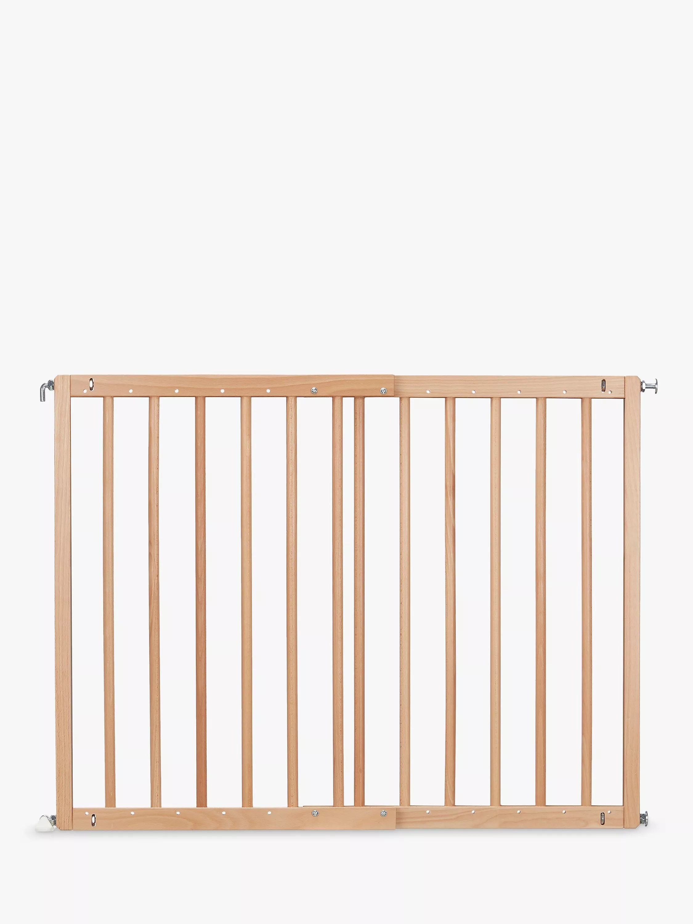 Made from European FSC-graded beech wood, the gate is designed to fit openings of 60.5cm - 102cm, with a mounted height of 74.5cm, and includes adult-operated quick-release wall fittings for when the gate is not in use. The gate has to be fixed with screws onto the wall.