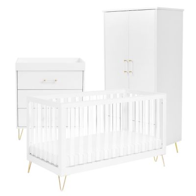 This Kimi XL Acrylic 3 Piece Nursery Room Set blends contemporary style with modern materials for a striking look. The design features retro hairpin legs and acrylic details, offering a fashionable statement piece for the baby's room. Crafted with quality components, this suite ensures both aesthetic appeal and practicality for growing families.